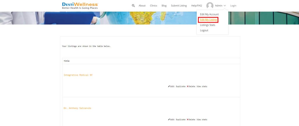 If you have already claimed an existing listing or set up a new one, you can easily modify the listing details at any time. Please click on the “Edit My Listing” link in the drop-down menu and follow the instructions on the page.